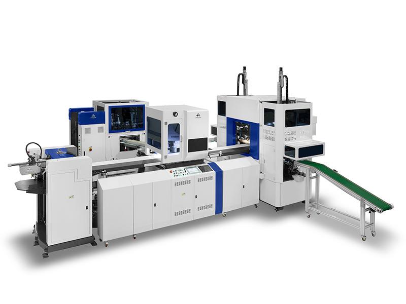 全自动天地盖制盒机是生产制作高档精品天地盖纸盒的最佳设备,它设计合理、性能可靠、达到世界同等技术水平。采用PLC控制、光电跟踪定位、液压纠偏、触摸屏人机界面,实现自动送面纸、面纸上胶、纸板自动输送、纸板贴角、纠偏定位贴合、纸盒包边成型等动作一次性完成有效代替人工生产,大大提高生产效率与纸盒成品质量。可适用于手机盒、鞋盒、化妆品盒、衬衫盒、月饼盒、酒盒、香烟盒、茶叶盒等高档纸盒包装。